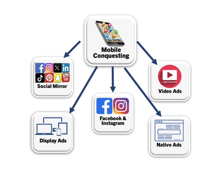 Additionally, leveraging capabilities from other advertising platforms like Mobile Conquesting gives Meta that much more allure. This works by using a “universal pixel” or cross-platform targeting which is an optional add-on to mobile conquesting to follow people who have been served mobile ads onto other ad platforms on ANY device they use.